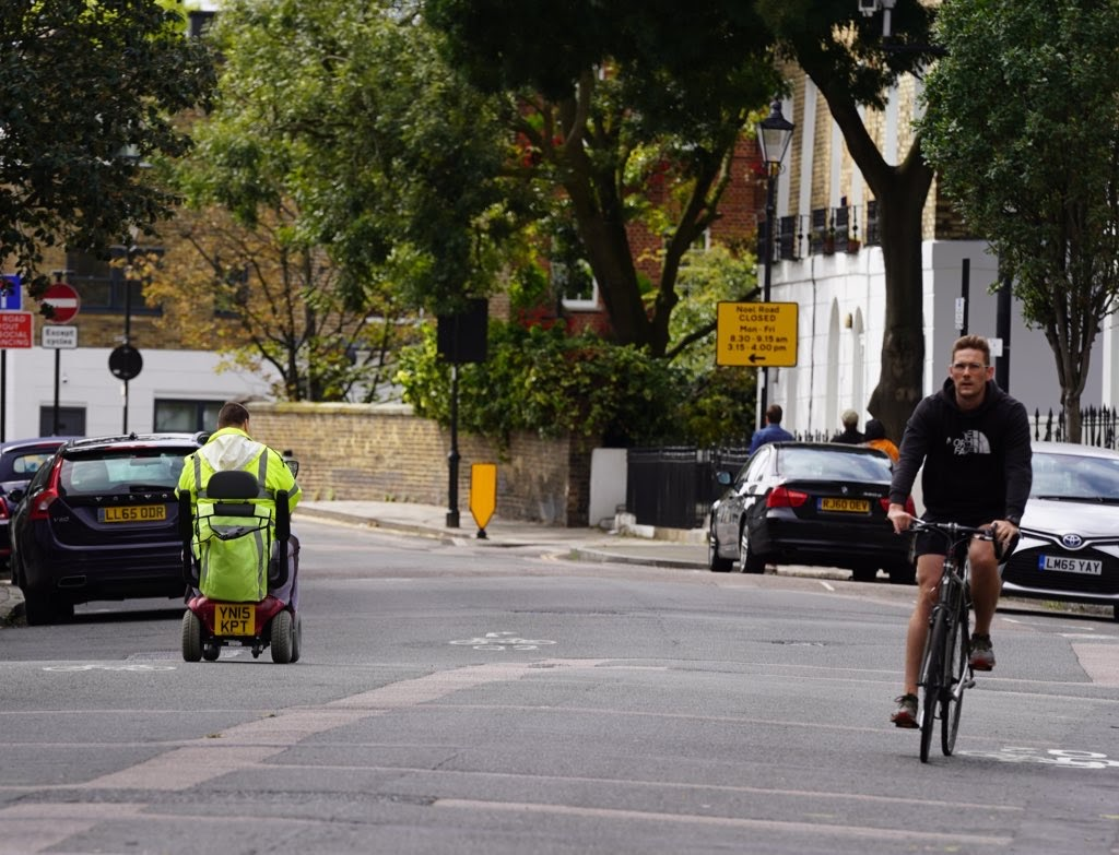 A very noticeable increase in mobility scooter and wheelchair users taking advantage of roads (which are smoother and easier to use than most pavements in the ward).